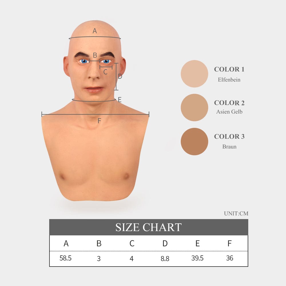 High quality medical grade silicone mask: The latest 4th generation mask is much more stretchable and due to greater stretchability, it can fit the different face shapes and head shapes; softer and more comfortable, more natural and real-looking; very safe, non-toxic, tasteless and can directly touch the skin.