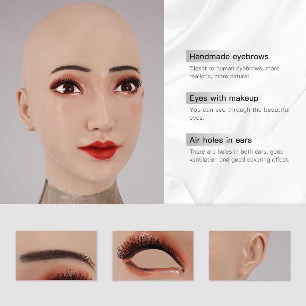 - Humanized design: The eye hole is empty, you can look out through the eye hole, and the mouth can be opened for talking, eating and drinking.The face has a permanent light makeup that makes you look more beautiful. You can also make makeup directly on the mask, and the makeup is detachable. And the most realistic is the eyebrows are manually punched.